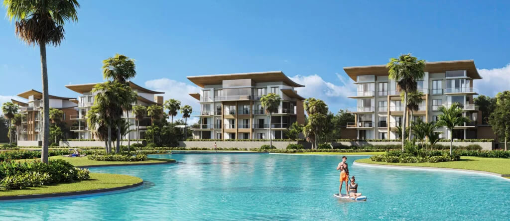 Dos tipos de villas ubicadas alrededor de la laguna.